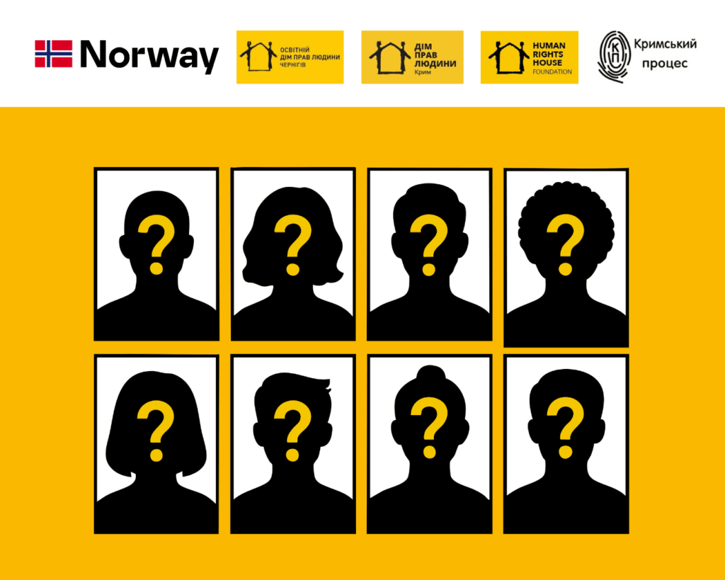 Доповідь підготовлено за фінансової підтримки Норвегії та Фонду домів прав людини. Проєкт «Протидія насильницьким зникненням на тимчасово окупованих територіях України» реалізує Громадська спілка «Дім прав людини «Крим» у партнерстві з Громадською спілкою «Освітній дім прав людини — Чернігів» та Громадською організацією «Кримський процес». Зміст цієї Доповіді є виключною відповідальністю Громадської спілки «Дім прав людини «Крим» і жодним чином не відображає офіційну позицію Уряду Норвегії.